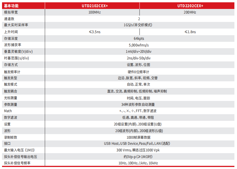 UPO1000CS系列配置100MHz/200MHz两个级别带宽,硬件非交织独立采样每通道1GS/s采样率,标配存储深度高达56Mpts(每通道),高速波形捕获率500,000wfms/s可以准确获取异常事件如视频、抖动、噪声和矮波信号等。